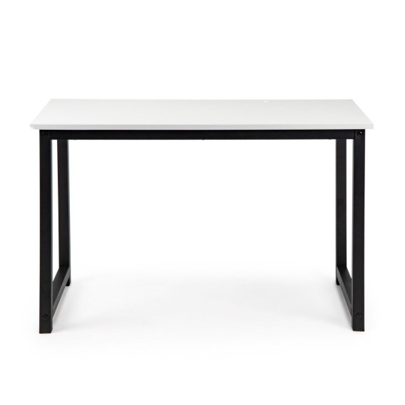 Biurko zostało zaprojektowane według panujących trendów. Połączenie białego blatu z masywnymi, czarnymi nogami wpasuje się w każdy rodzaj wnętrza. Laminowana powierzchnia blatu jest odporna na codzienne użytkowanie, m.in:. na zarysowania oraz plamy. Stabilna, metalowa konstrukcja tworzy elegancką całość. Biurko idealnie pasuje do biur, pracowni czy też pokoju nastolatka.