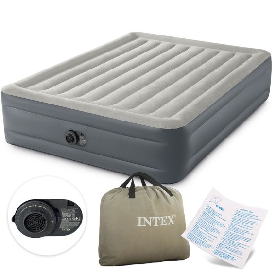 Materac welurowy INTEX o wymiarach 203x152x46 cm jest idealny do wypoczynku 2 osób. Wykonany z wytrzymałego tworzywa PVC, na górze został pokryty przyjemnym w dotyku, wodoszczelnym materiałem welurowym. Całość w przyjemnej, kremowej kolorystyce będzie pasowała do każdego wnętrza. Dzięki wbudowanej pompce elektrycznej (zasilana 220-240 V), czas potrzebny na przygotowanie do użytku dmuchanego łóżka to 250 sekund. Zawór bostoński pozwoli w minutę spuścić powietrze, następnie złożyć materac i schować go do szafy.
