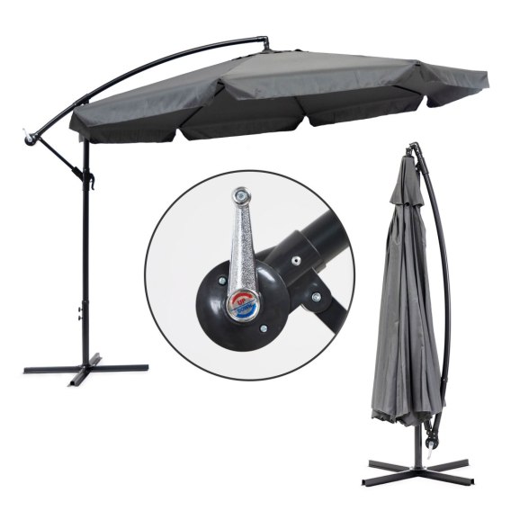 PARASOL OGRODOWY DUŻY NA WYSIĘGNIKU SKŁADANY 3,5 M SZARY MULTIGARDEN