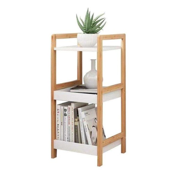 Stelaż, a zarazem nogi całego regału, zostały wykonane z solidnego drewna bambusowego, który bardzo dobrze wpasowuje się w każde wnętrze.