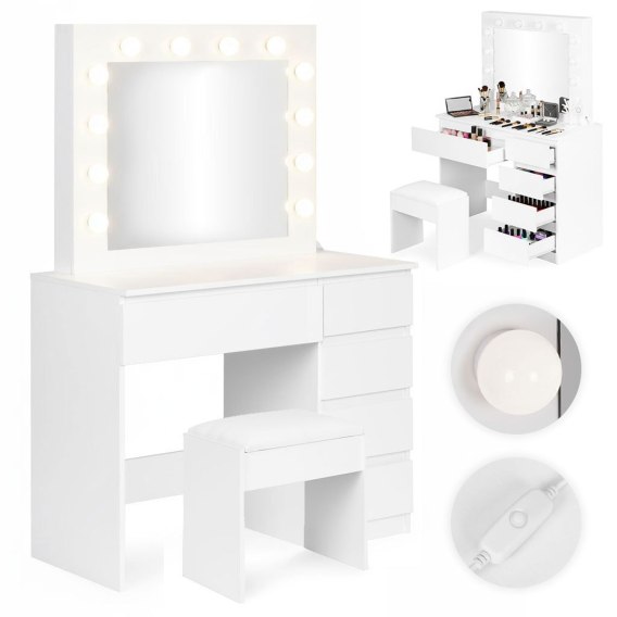 Toaletka kosmetyczna z lustrem i oświetleniem 5 szuflad taboret ModernHome