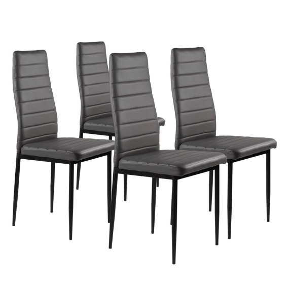 ZESTAW KRZESEŁ DO JADALNI SALONU Z EKOSKÓRY 4 SZTUKI WYSOKIE OPARCIE SZARE MODERNHOME