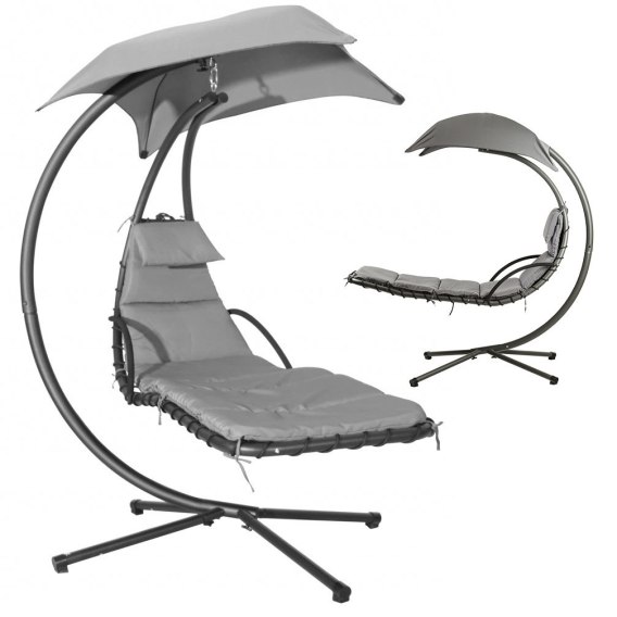 Wisząca leżanka zawdzięcza swoją stabilność i bezpieczeństwo odpowiednio wyprofilowanemu stelażowi, który pozwala na kołysanie i huśtanie na leżaku. Duży, regulowany daszek zapewni przyjemny cień podczas upalnych dni, a lekkie bujanie dodatkowo umili nam czas na spędzony na zewnątrz. Wodoodporny, miękki materac z zagłówkiem gwarantuje komfortowy wypoczynek.